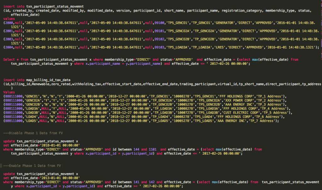 • Test Script – in SQL
