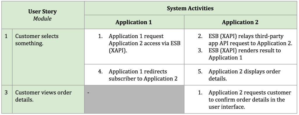 At the start of analysis stage, the business analyst is expected to define the expected user experience and corresponding system activities. This activity goes hand-in-hand with the technical architect’s solutioning process.