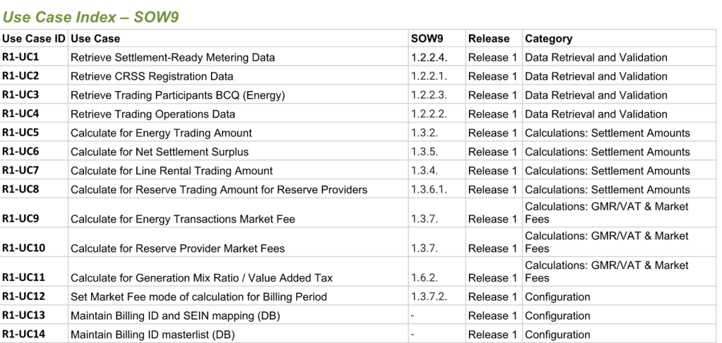 1.3.1 The system shall allow the users to perform calculations for trading amounts, calculations for market fees for energy, and calculations of market fees for reserves as separate processes.